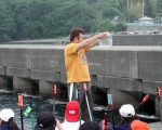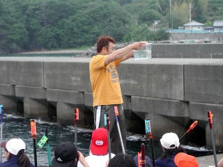 古牟岐港でのつり活動。時には30cm近い大物も釣れることがあります。
