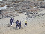 砂浜、磯、小張山そして東牟岐を、地図をたよりに歩く活動です。磯歩きは大変だけどオモシロイ・・・